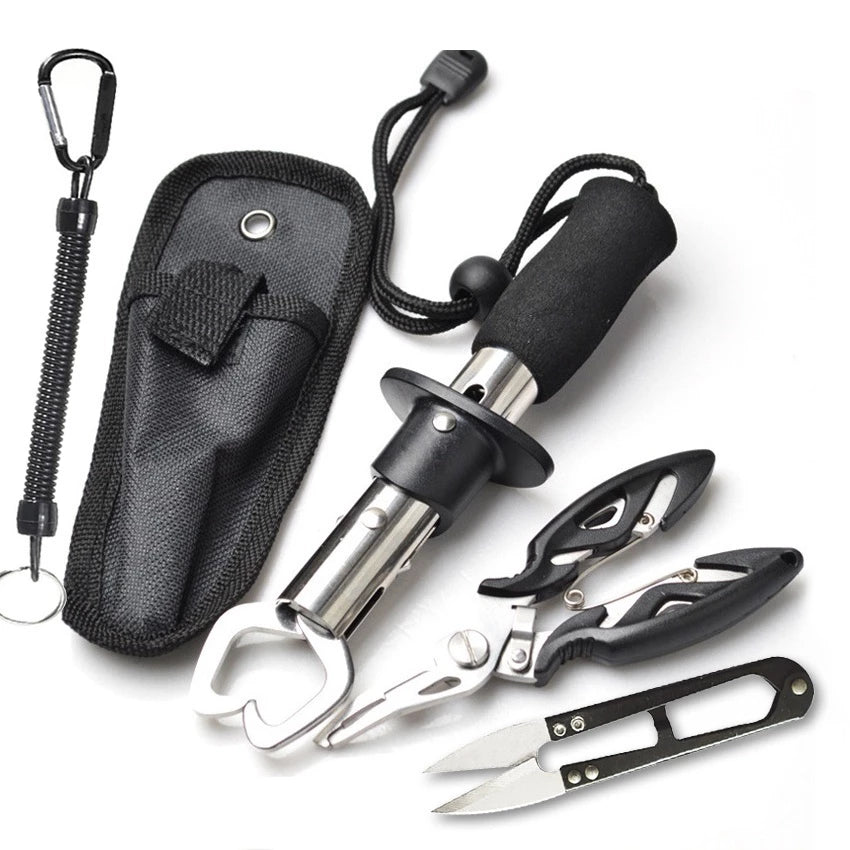 O kit inclui 5 peças essenciais, compacto e pronto para qualquer pescaria — reduz risco de cortes, aumenta a firmidade na captura e agiliza o manejo do peixe.